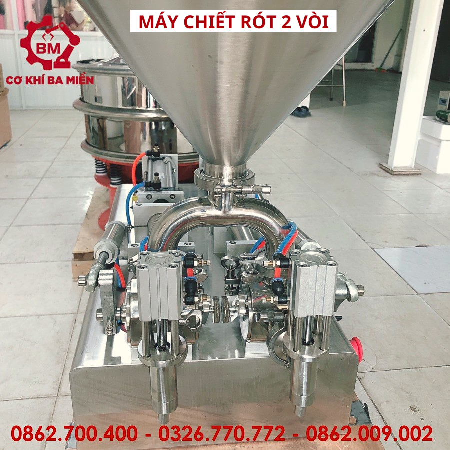 Máy chiết 2 vòi là sản phẩm máy dùng để chiết rót, sang chiết dung dịch ở dạng lỏng hoặc sệt. Máy được trang bị 2 vòi chiết rót dung dịch và có thể dễ dàng thay đổi kích cỡ đầu vòi, đáp ứng được nhu cầu của khách hàng.