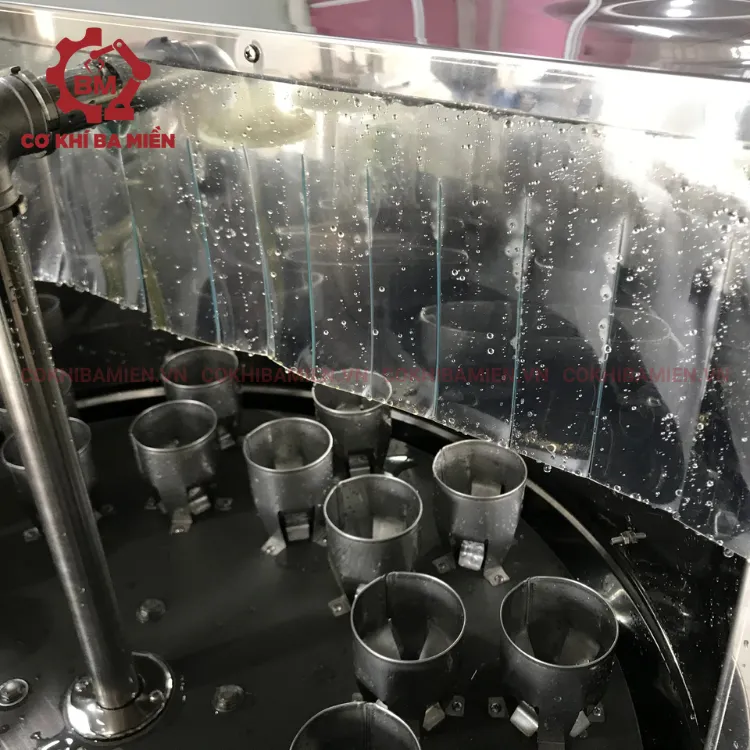 Hệ thống vòi phun (24 hoặc 30 vòi): Sắp xếp đồng đều trên mâm quay, có thể tùy chỉnh để phù hợp với nhiều kích cỡ chai.