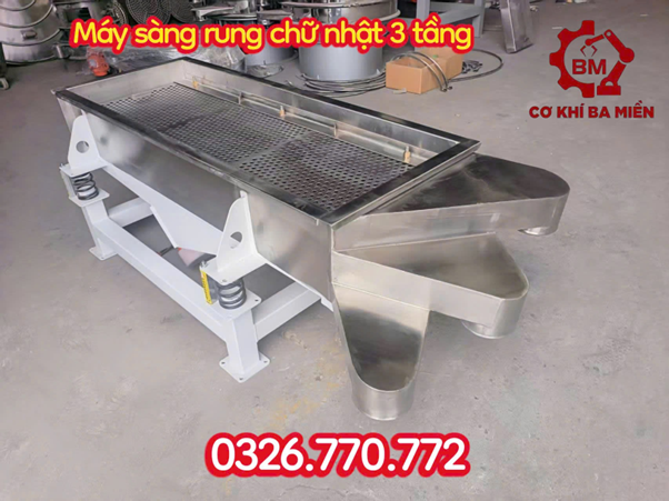 Máy sàng rung được biết đến là loại máy phân loại và rây nguyên liệu từ bộ đến các nguyên liệu có kích thước không đồng đều nhưng nhỏ hoặc gặp khó khăn trong quá trình phân loại. Được phát triển với nhiều hình dạng từ tròn đến lập phương nhưng máy sàng rung chữ nhật được xem là độc đáo về sự tiện dụng.